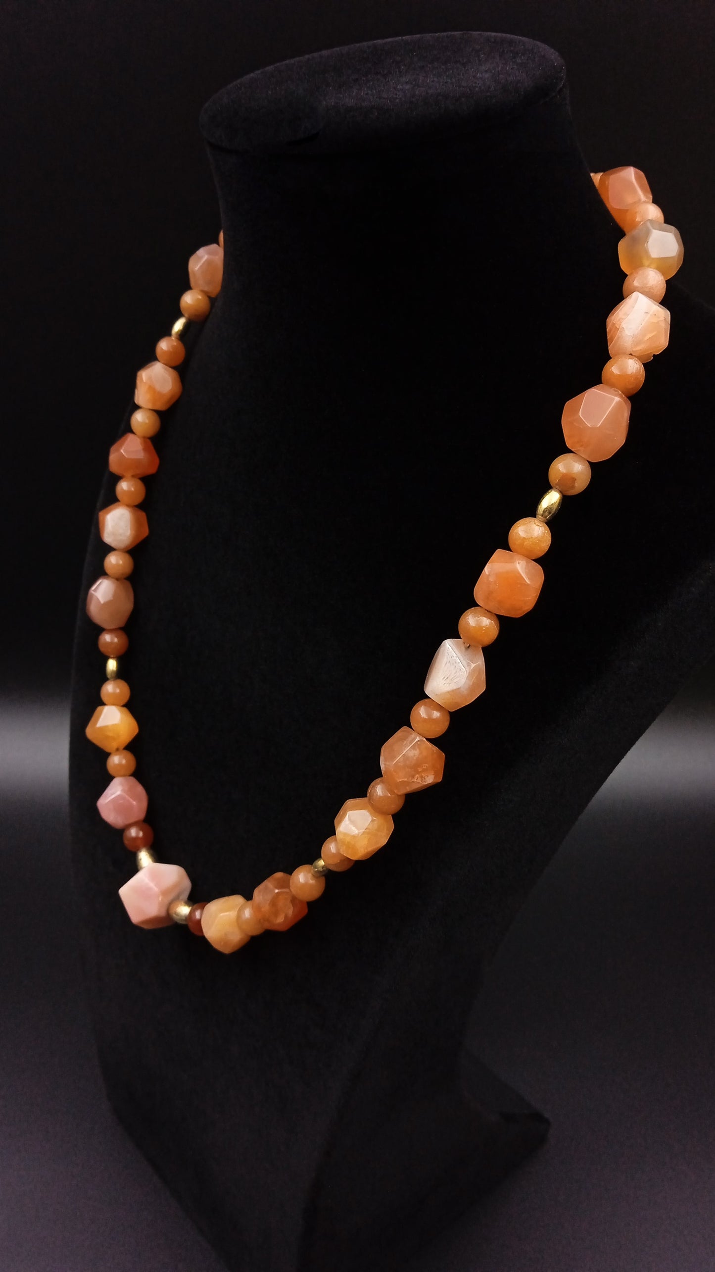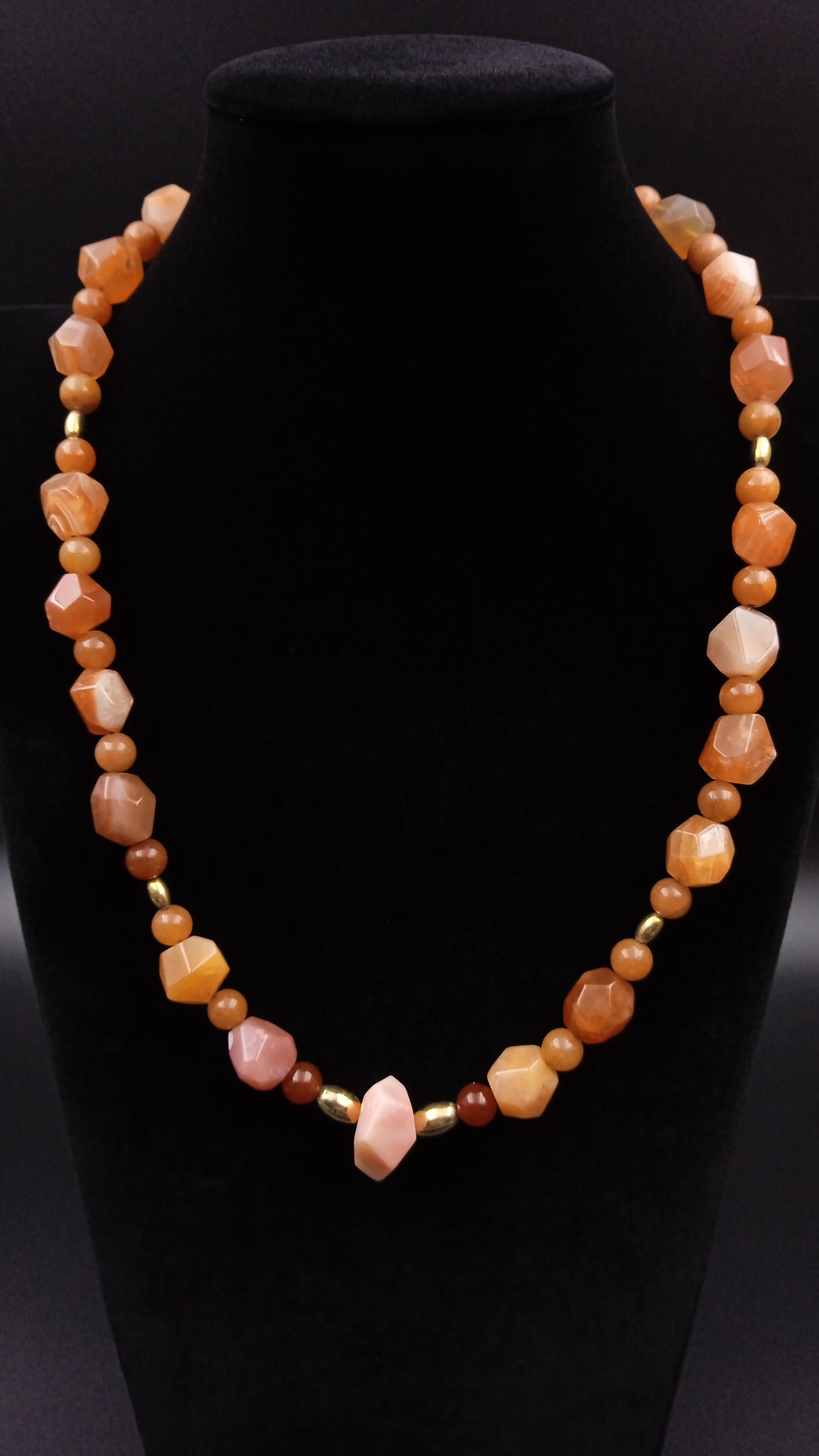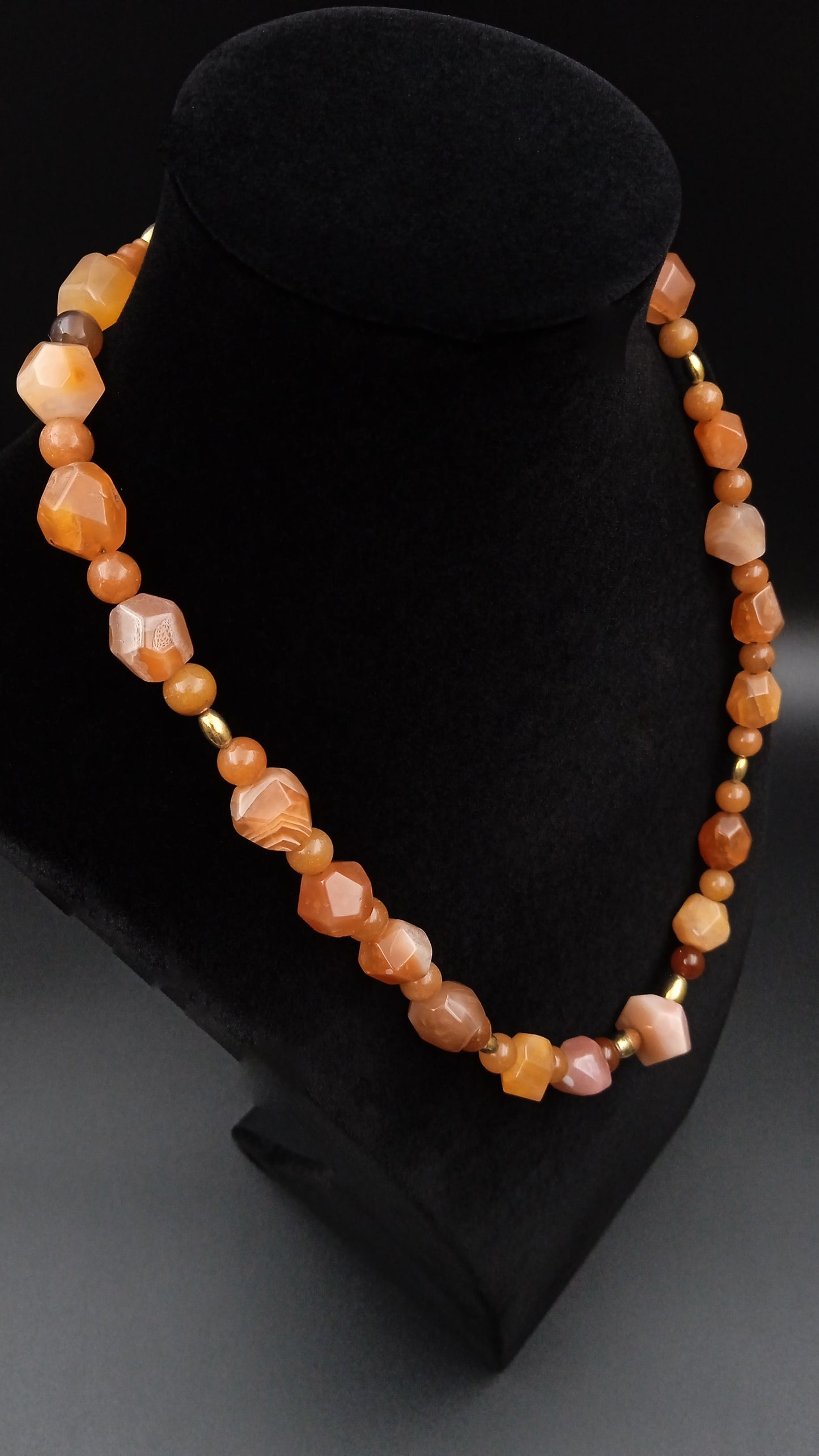 Dark to light orange carnelian  in creative and pearl form and , with gold-plated silver beads .