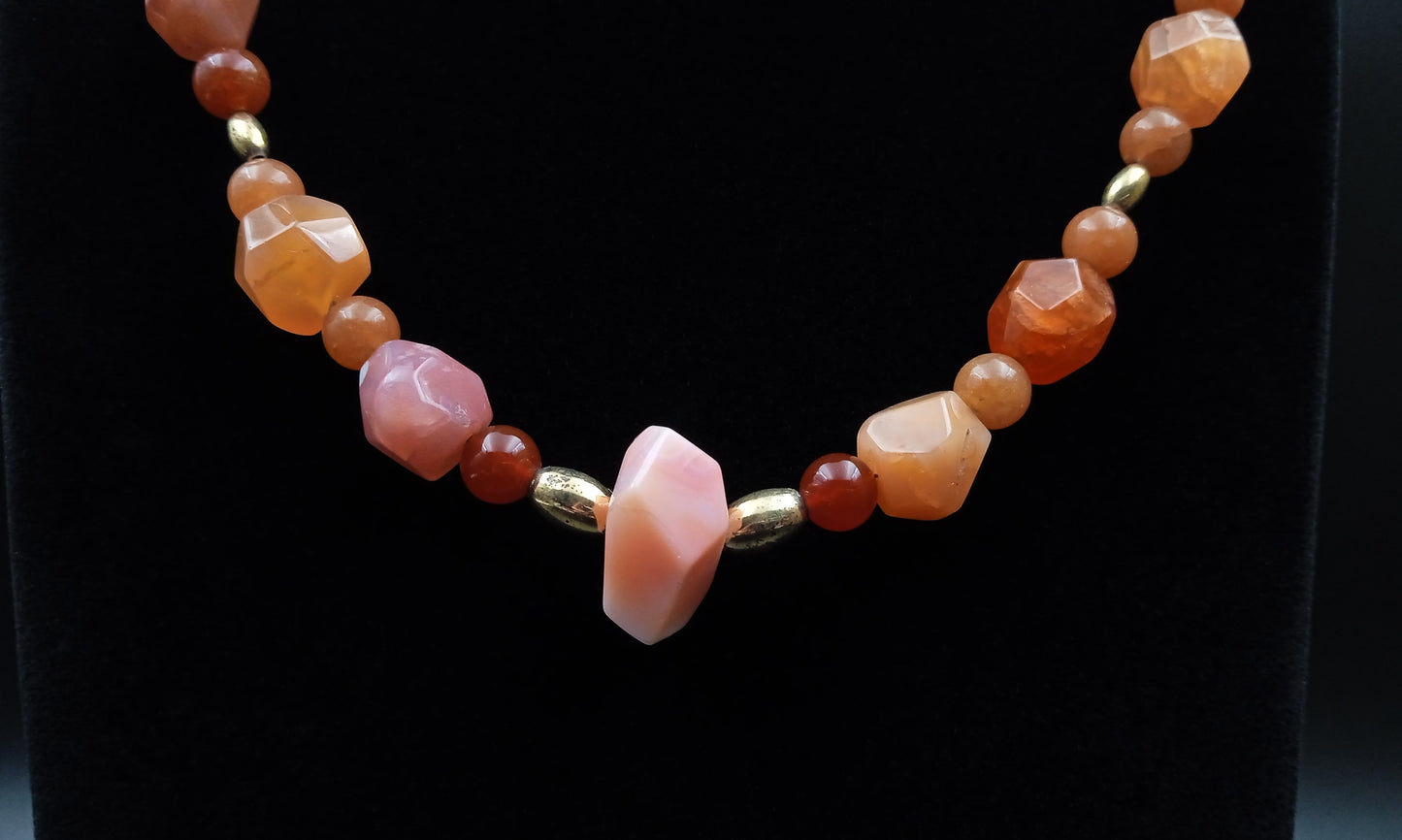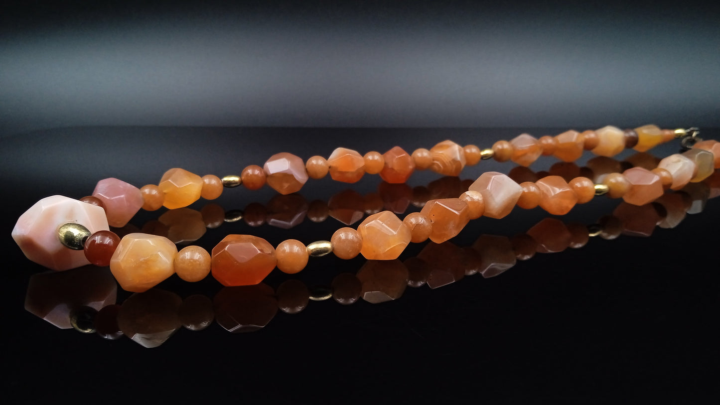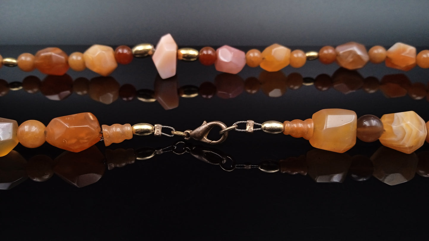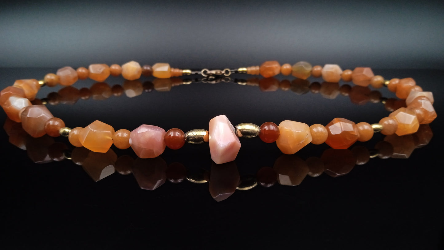 Dark to light orange carnelian  in creative and pearl form and , with gold-plated silver beads .