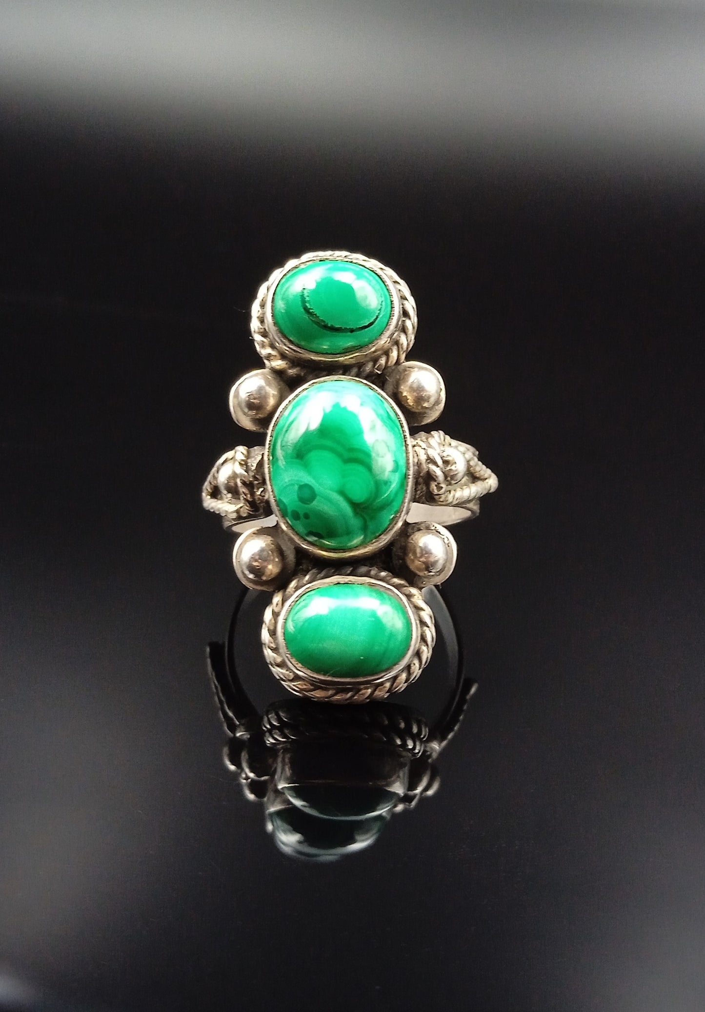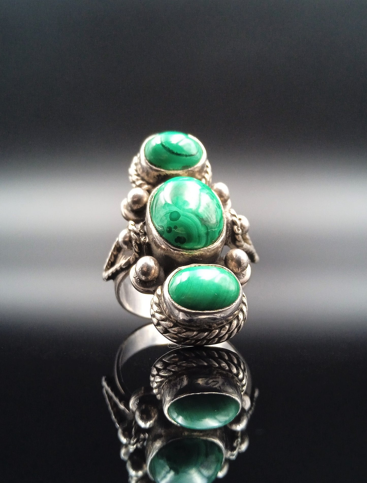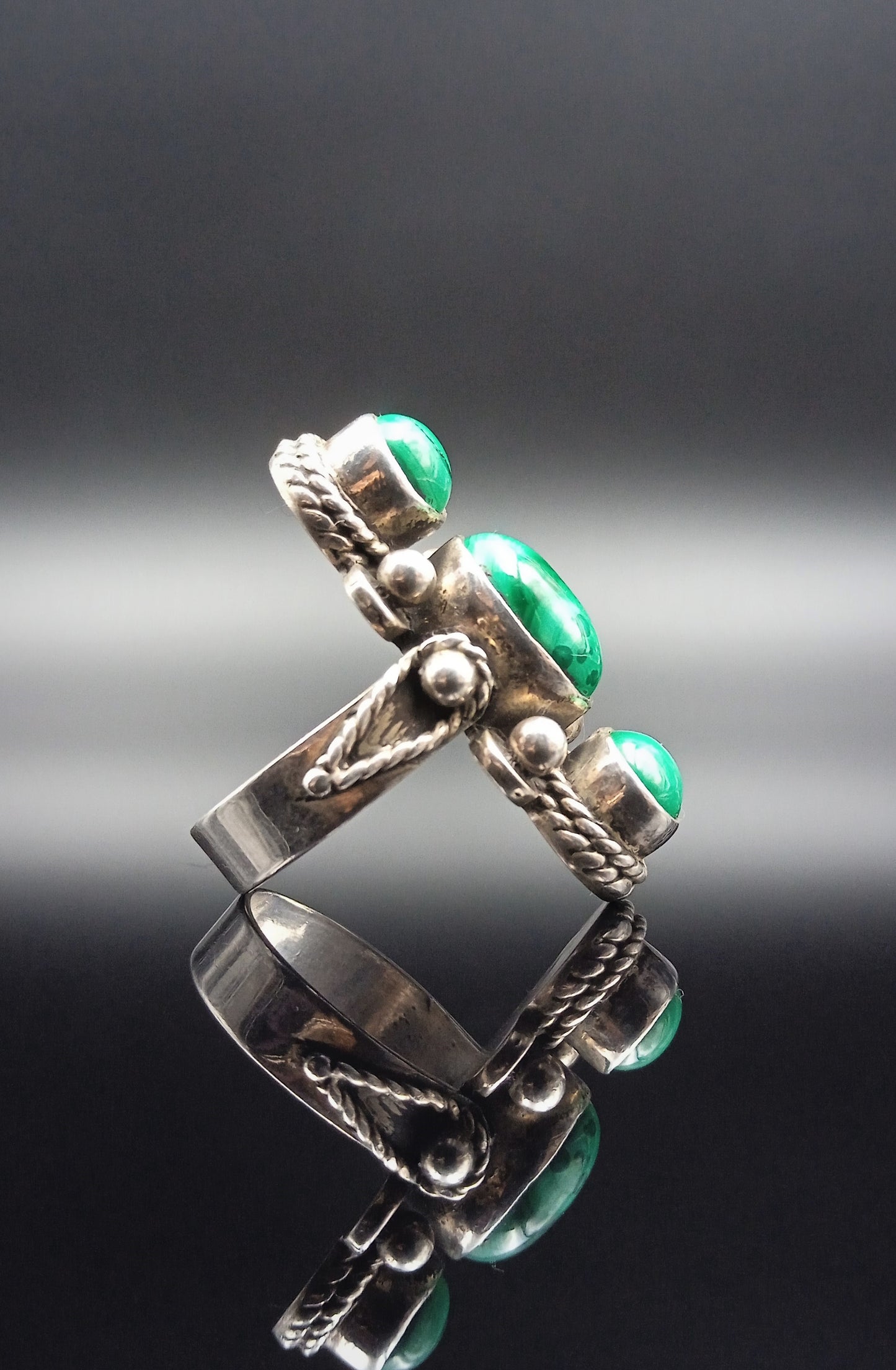 Magnificent vintage malachite ring made of 925 silver , oval shape.